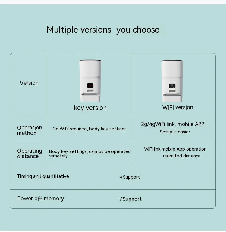 Assurez-vous que votre compagnon félin soit toujours bien nourri, même en votre absence, grâce au distributeur automatique de nourriture . Ce distributeur intelligent est conçu pour vous offrir confort et tranquillité d'esprit, alliant technologie et fonctionnalités pour répondre aux besoins de votre animal sans effort.